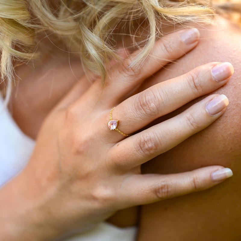 Nous recommandons de porter cette bague en quartz rose afin de vous rappeler chaque fois que vous la regardez ou la touchez au cours de la journée, que vous êtes unique et que vous méritez tout l'amour que vous êtes prête à vous donner. Cette bague est fabriquée uniquement pour Univers Minéral, en Thaïlande avec une pierre de quartz rose naturelle provenant de Madagascar.