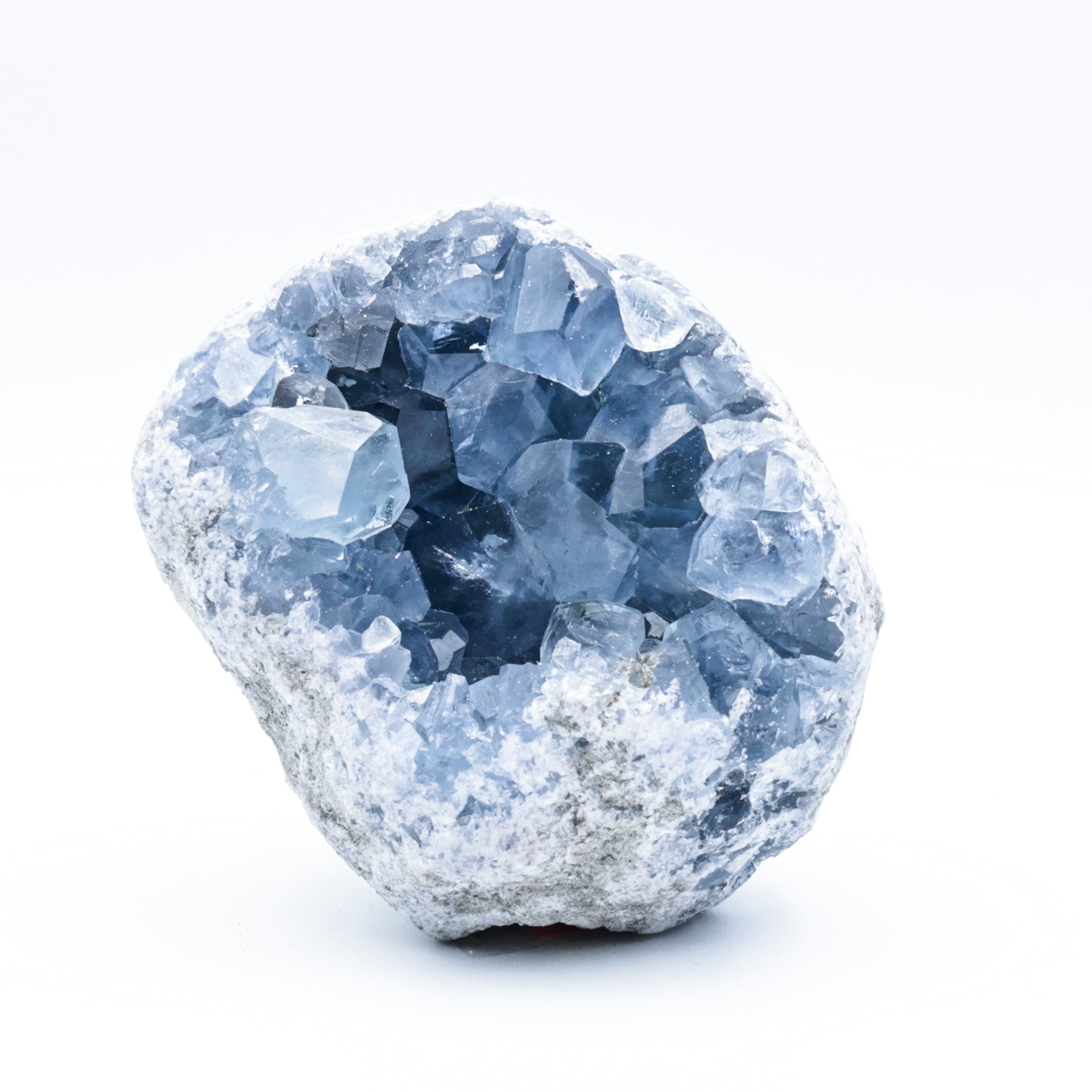 Vous pouvez égaement associer votre géode de Célestine avec d'autres pierres naturelles liées aux mêmes chakras, comme la labradorite, le lapis-lazuli, le chrysocolle ou le grenat pour le 3e oeil, ou l'aigue-marine, le larimar, l'apatite, ou la calcédoine bleue pour la gorge.