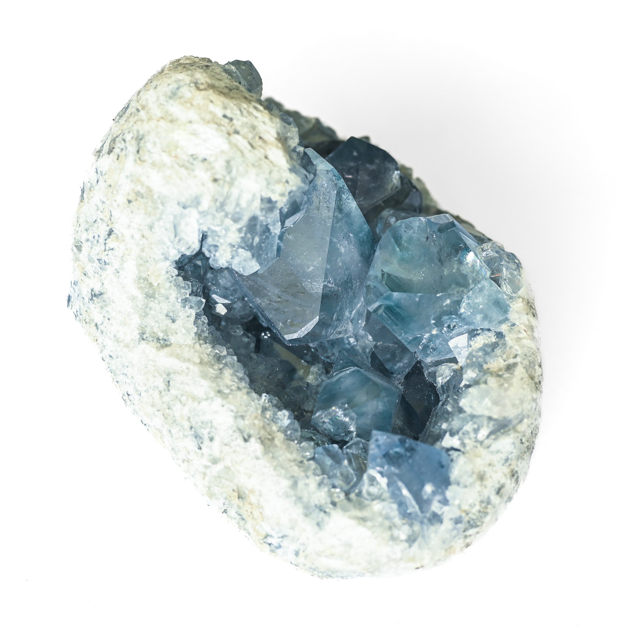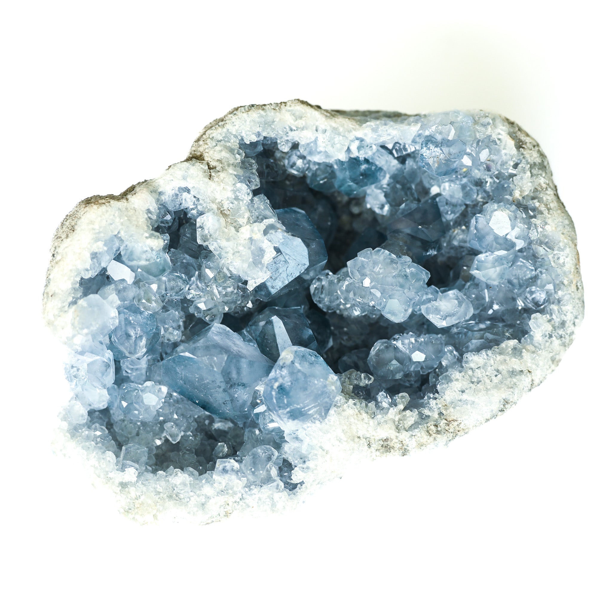 Vous pouvez associer votre Géode de Célestine avec d'autres pierres présentes avec la célestine dans la nature, comme la septaria, la calcite bleue ou la pyrite .