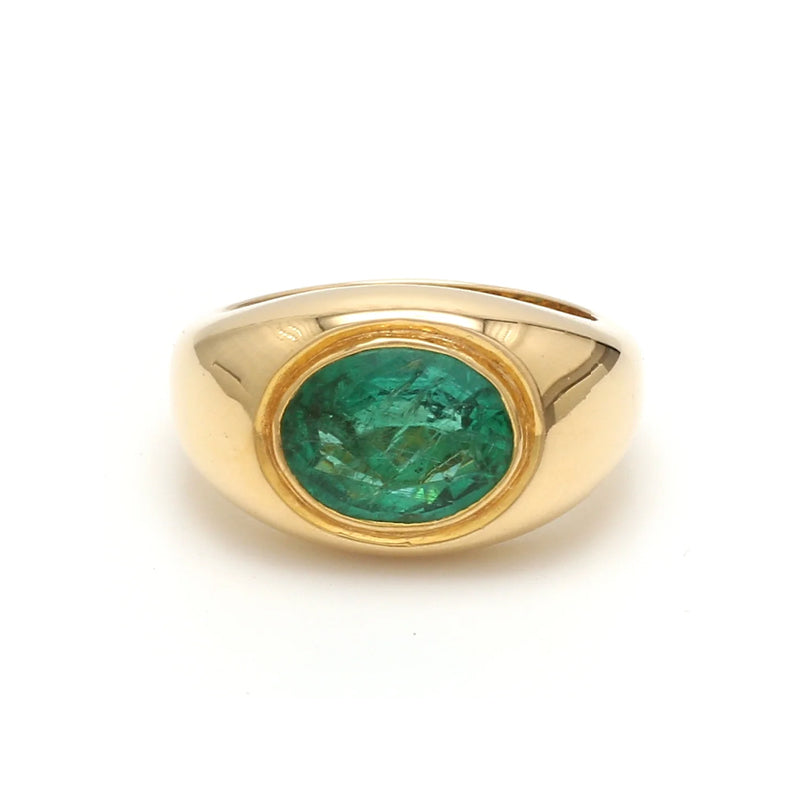 Cette bague en or 14K est sertie d'une émeraude naturelle de Zambie de plus de 2,5 carats, prélevée de manière éthique.