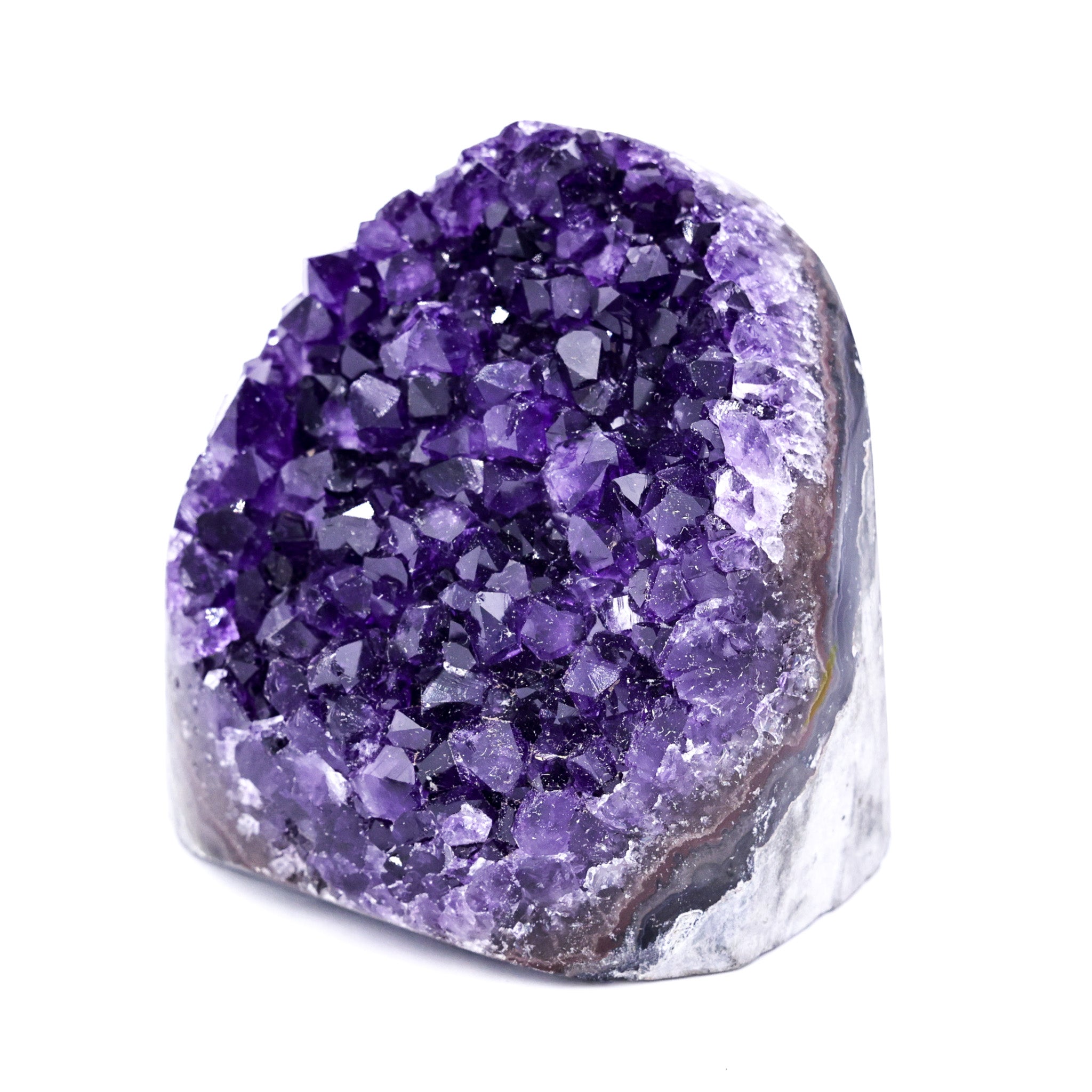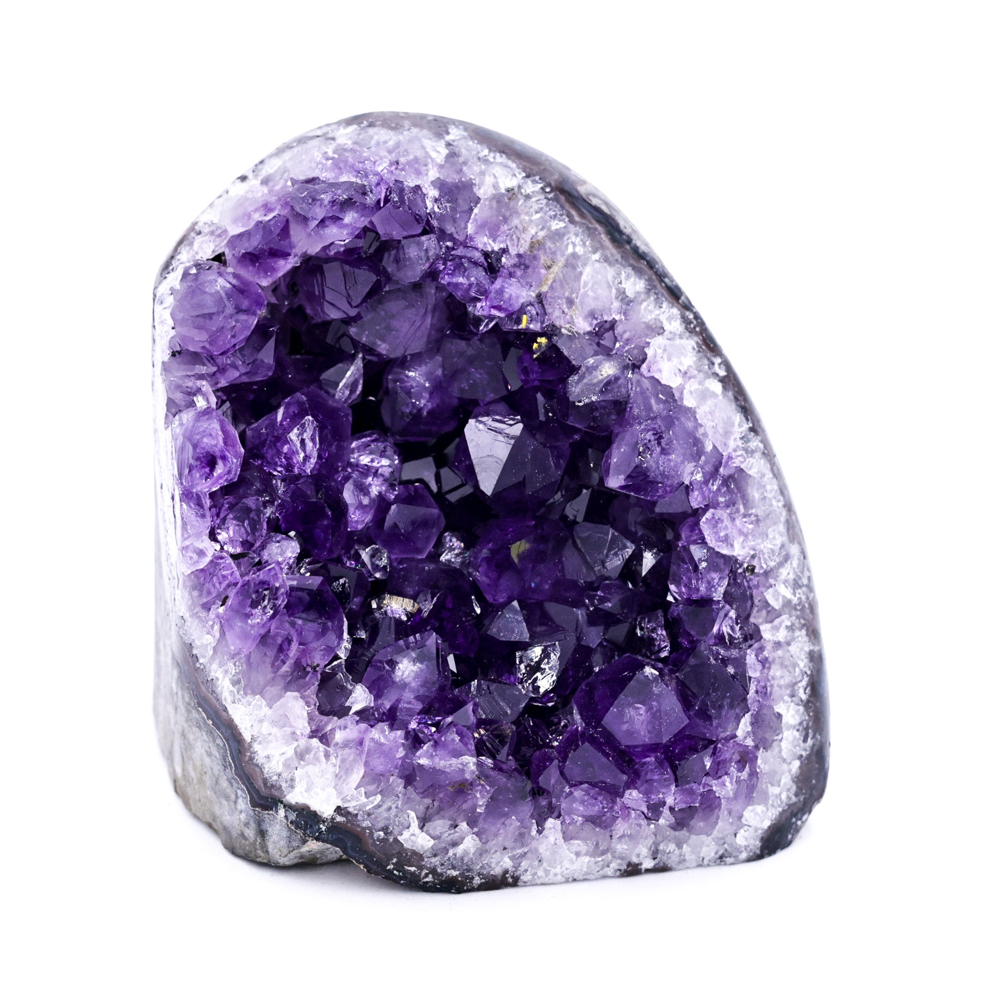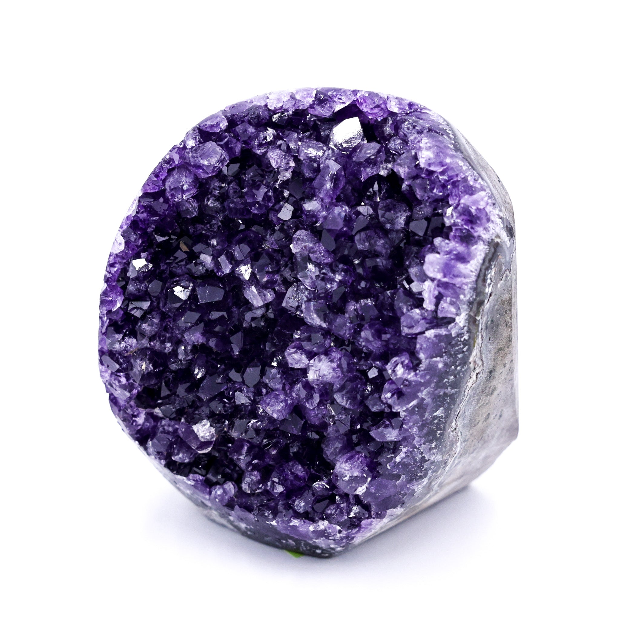 Les améthystes d’Uruguay sont reconnaissables par la taille de leurs cristaux, toujours autour de 1 centimètre. Le violet de ces améthystes est doux et profond.