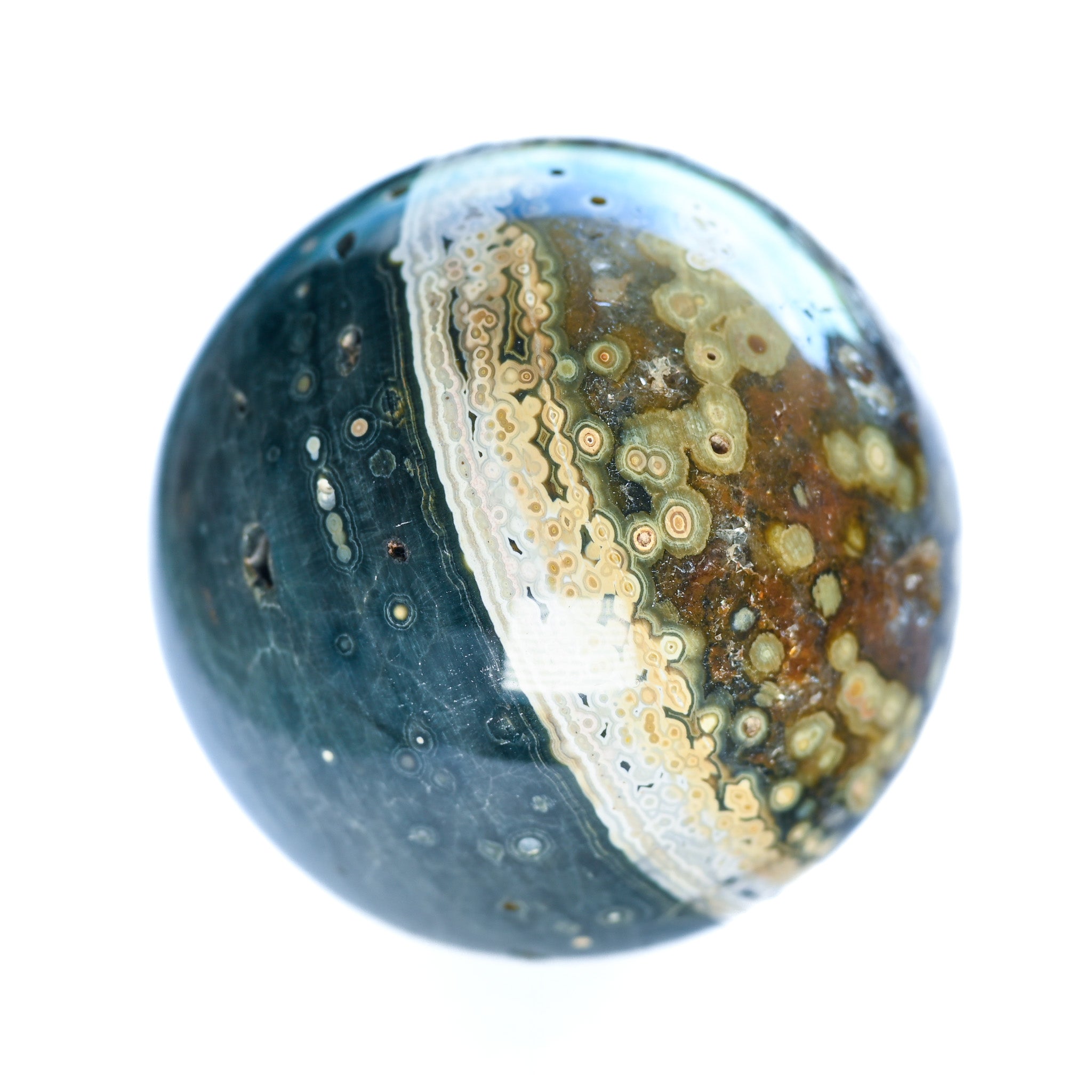 Ce jaspe orbiculaire riche en cristal de roche drusiforme intensifie l'effet guérisseur.