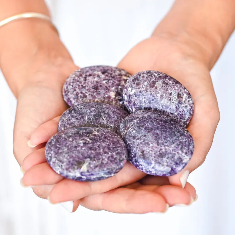 Pierre riche en lithium, la lépidolite aide à stabiliser nos émotions, changements d'humeurs et bipolarité. Excellente pour nous libérer des dépendances émotionnelles et mentales, elle apaise notre esprit et améliore notre sommeil, essentielle à une profonde guérison émotionnelle.