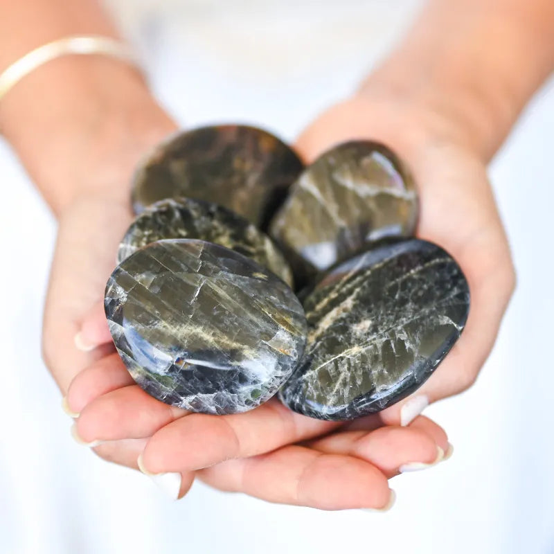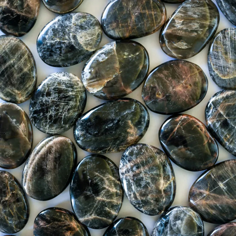 "Pierre des nouveaux départs", la pierre de lune noire est une pierre d'apaisement, très liée aux énergies de la femme et à l'intuition.