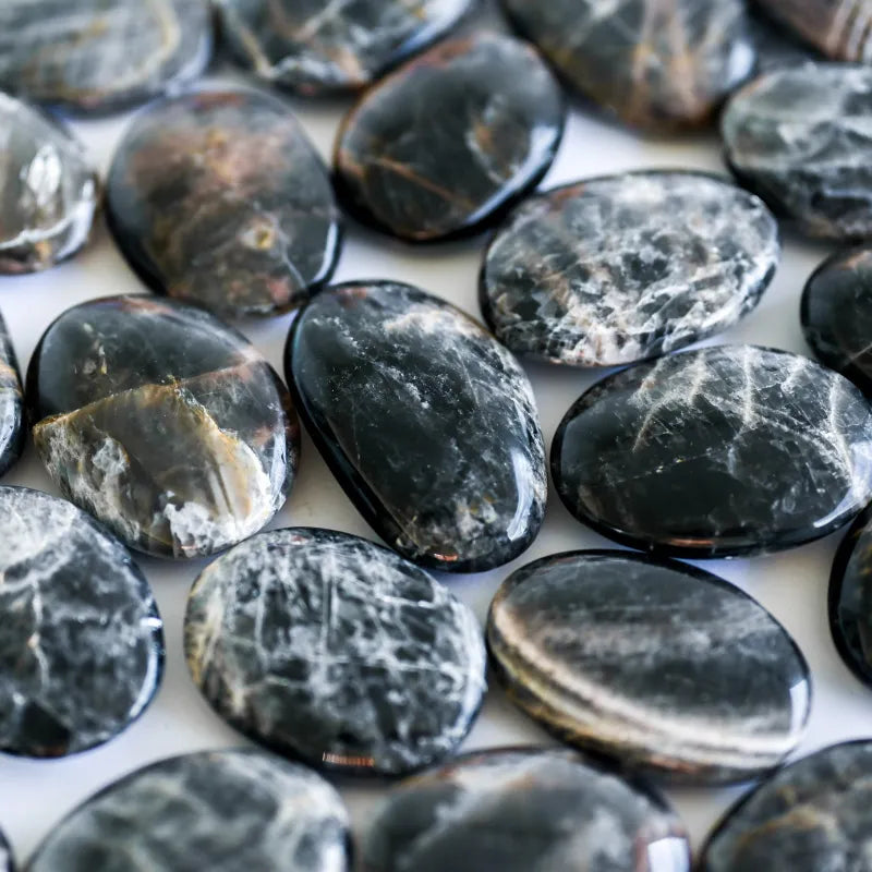 Galet de Pierre de lune noire naturelle polie, qualité AAA
